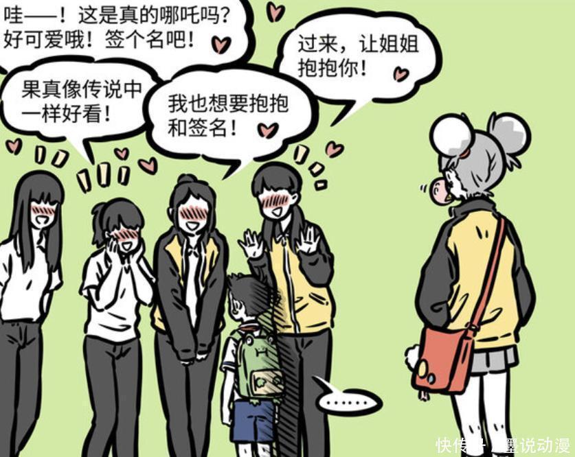 哪吒实在没办法,只能被迫跟着去地涌夫人所在的学校。这些高中女生见到哪吒,那就像是见到偶像一样,要签名、拍照还要抱抱。此时哪吒已经什么话都说不出来了,只想回南天门小学。那么这一次经历之后,哪吒变成什么样子?