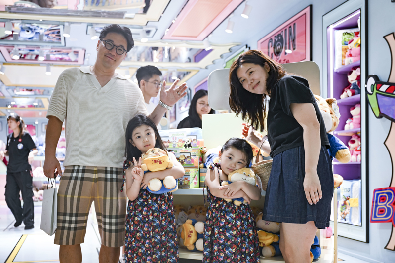 2025年7月17日,韩国游客在位于上海市南京路步行街的一家潮玩店里购物。新华社 发