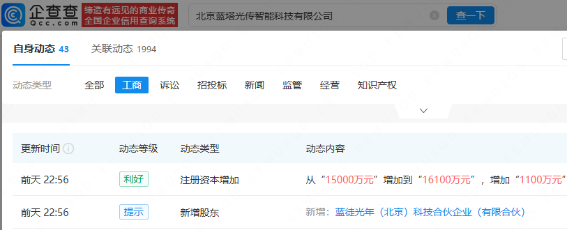 涨中宝配资平台 蓝箭航天持股的卫星技术公司蓝塔光传增资至1.6亿