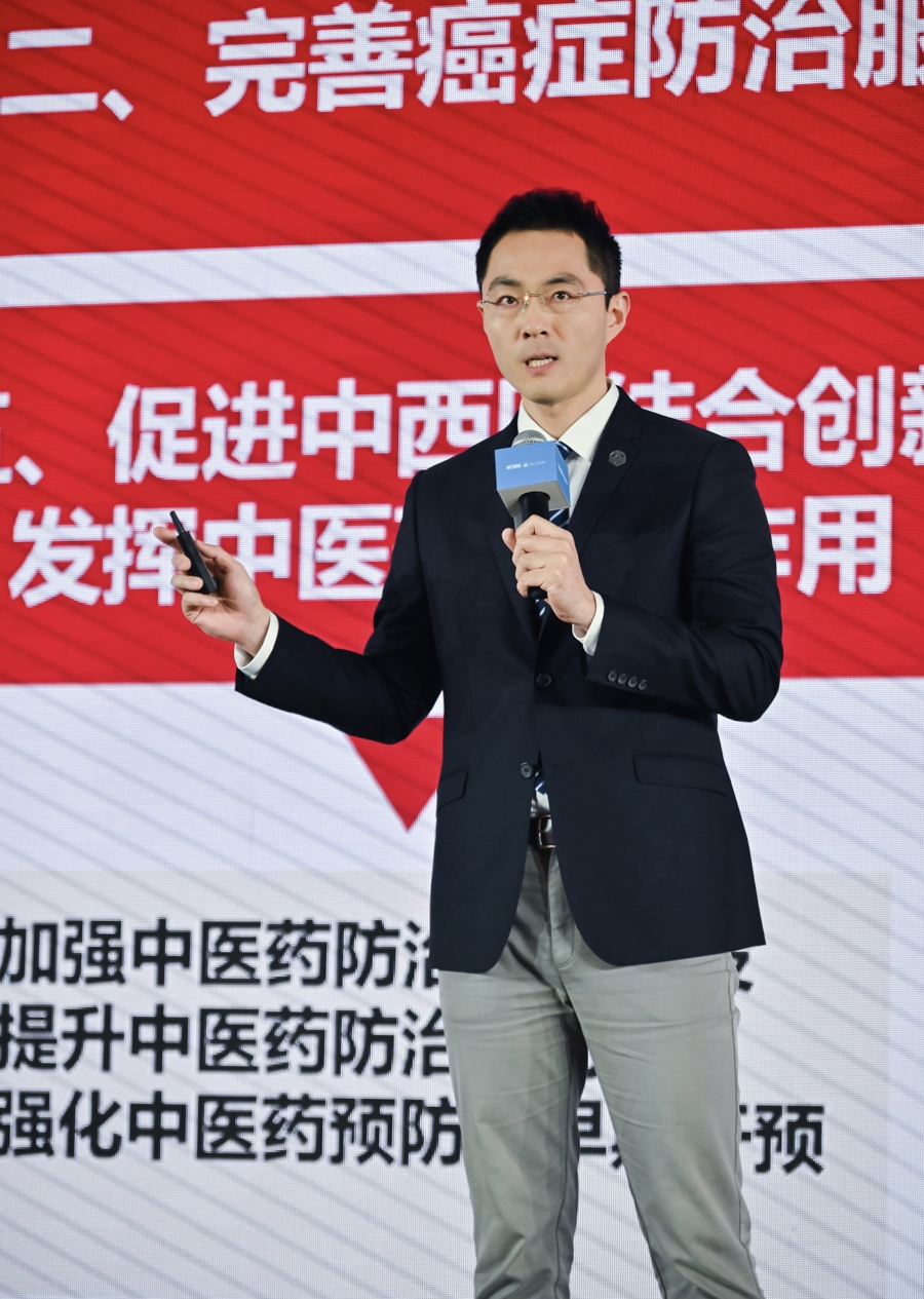 图为华大集团CEO尹烨发表题为“科技引领‘康寿时代’ 实现健康生活可及可享可负担”的演讲。