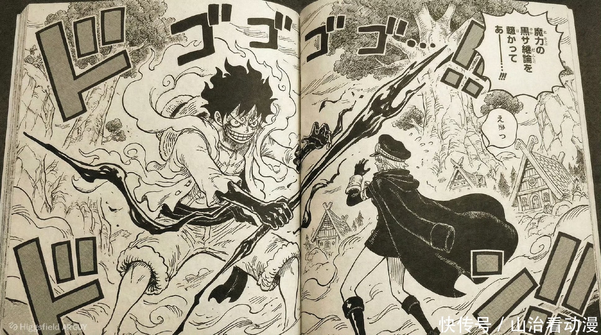 路飞和海尔丁等人马上出手对付这些怪物,洛基王子也使用了恶魔形态,他首次使用黑龙形态对付梦魇怪物和恶魔傀儡。路飞开启了尼卡形态战斗,伊姆大人附身在军子身上,她马上过来对付尼卡形态。
